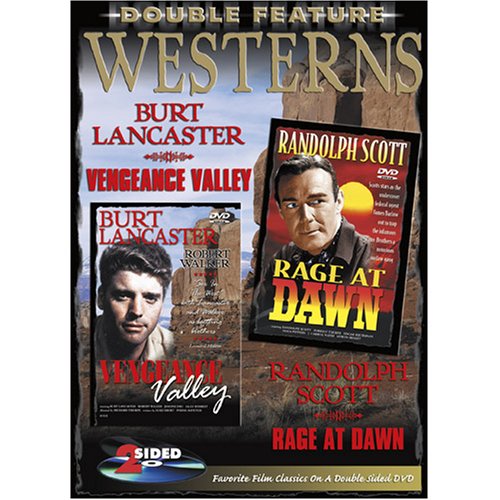 Two classic westerns: Rage at Dawn featuring Randolph Scott, and Vengeance Valley featuring Burt Lancaster.